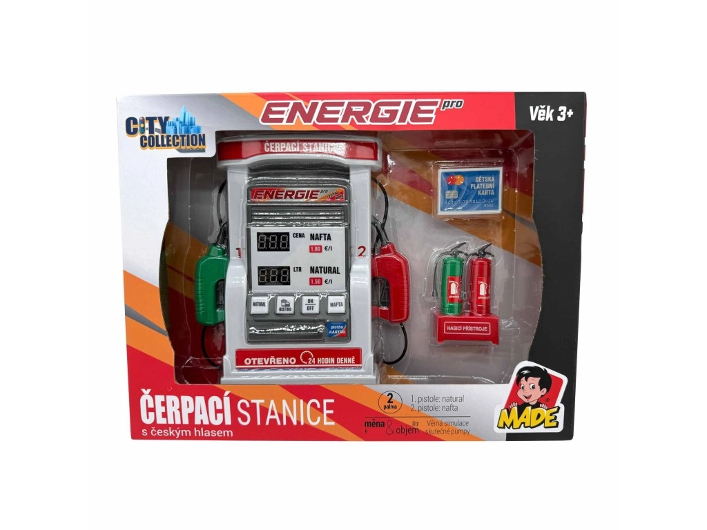 Бензиностанция City Collection за деца е вярна симулация на истинска помпа с чешки глас, която носи на децата забавление и учене в едно. Продуктът съдържа различни интерактивни функции, като автоматично изключване, и е идеален за малки момчета, които искат да изпробват какво е да са част от градския живот.