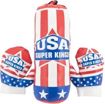 Този детски боксов комплект е чудесен избор за първи стъпки в света на бокса. Благодарение на по-малките размери е подходящ за детската стая и за тренировки у дома. Цветният мотив на американското знаме привлича децата и ги мотивира да се движат.