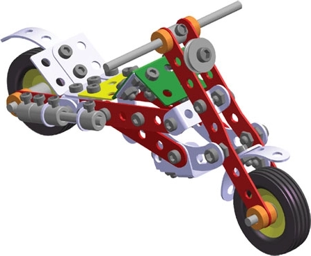 Позволява сглобяване на собствени дизайни на превозни средства благодарение на вариативността на металните компоненти.