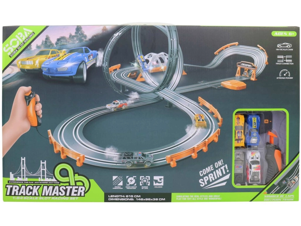 Писта за малки състезатели, която гарантира часове забавление и адреналинови надпревари. Предлага интерактивно изживяване с реалистични автомобили и писта с дължина 615 см.
