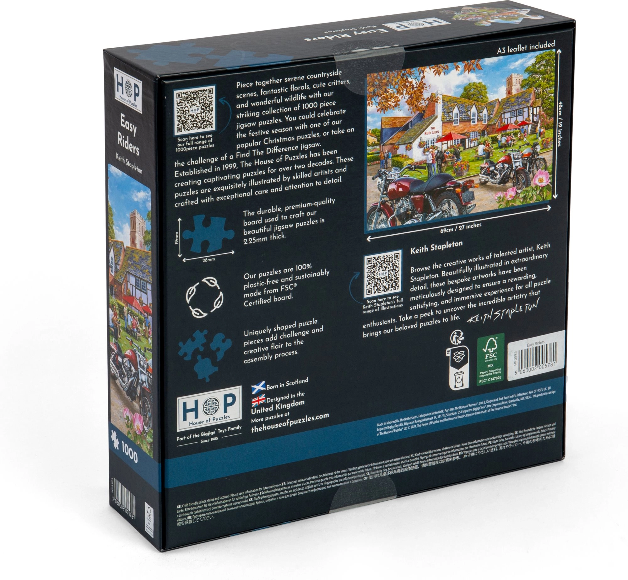 Готовият пъзел е с размери около 69 x 48 cm, което осигурява значителна площ за детайли, предпочитани в тази категория пъзели. Пъзелът е идеален за релаксация, забавление и споделени моменти със семейството или приятели.