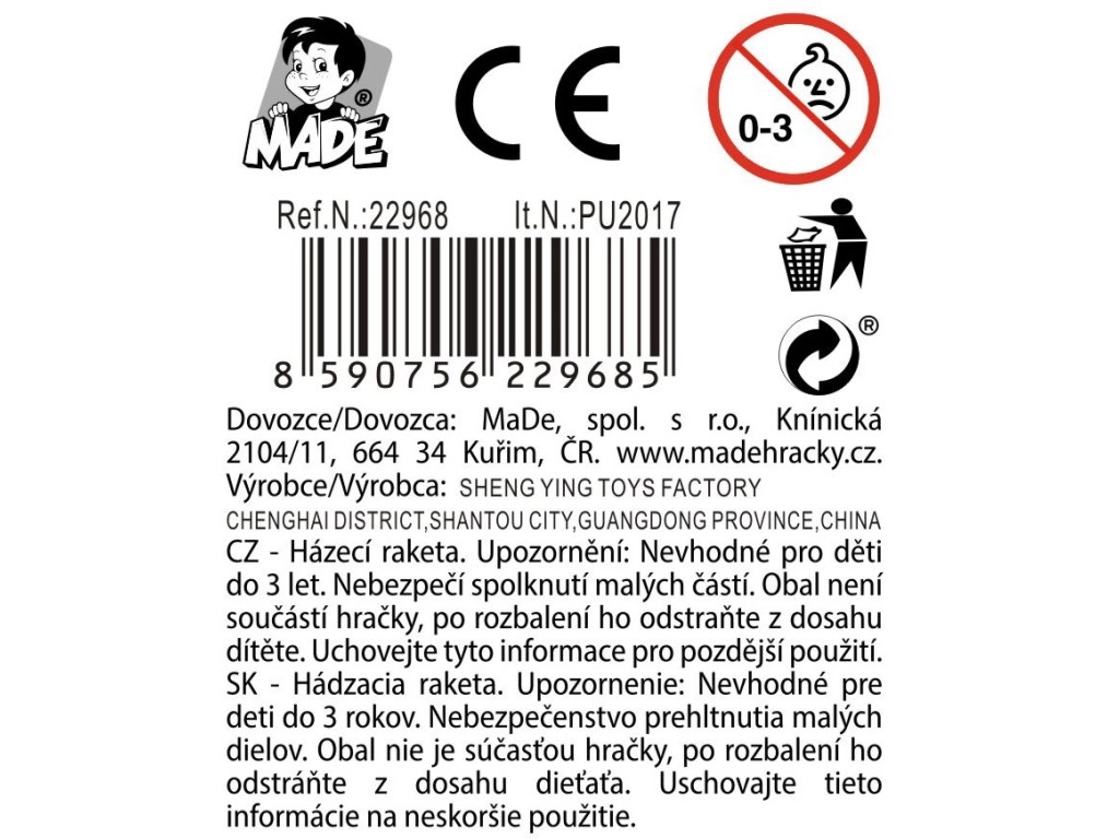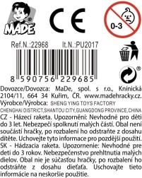 Хвърлящата се ракета е страхотна играчка за момчета от 3 години, която позволява активно забавление както навън, така и на закрито, без необходимост от батерии. Ракетата е изработена от качествена пластмаса и пяна.
