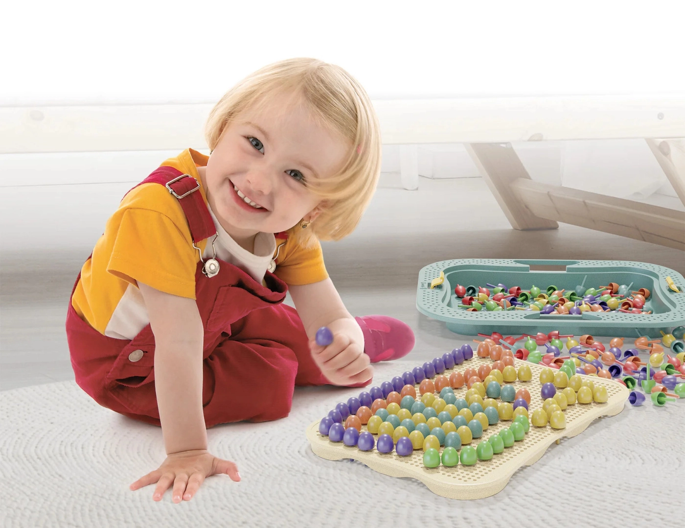 Мозайката PlayBio Fantacolor Design е идеална образователна играчка за деца от 3 до 6 години. С нея децата развиват своите моторни умения и въображение. Съдържа 160 цветни колчета в шест различни цвята, с които могат да се създават уникални изображения върху перфорирана дъска.