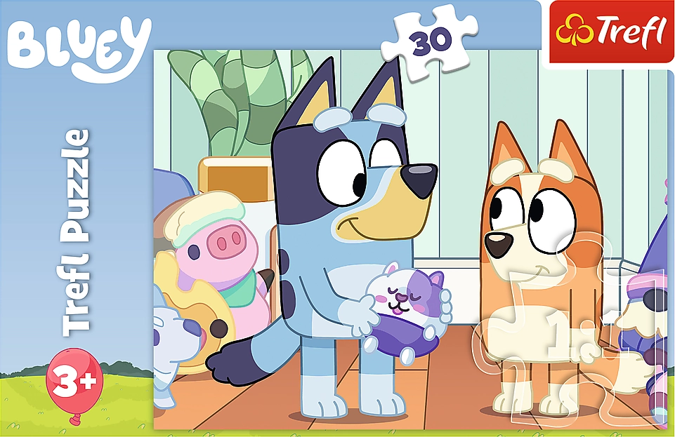Пъзелът Trefl с мотив Bluey предлага на семейства и деца часове на забавление и стимулация. С 30 части е идеален за малки деца, които искат да се насладят на художествени произведения, изпълнени с цветове и приключения.
