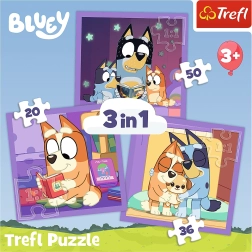 Открийте магията на подреждането с пъзела TREFL Запознай се с Блуи 3 в 1. Този пъзел предлага: