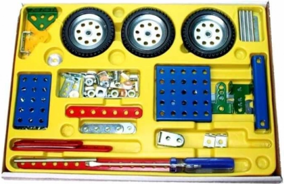 Открийте легендарния чешки конструктор MERKUR, който съчетава забавление и учене. Комплектът с 174 здрави метални части, колелца, винтове и гайки предлага възможност да сглобите мотоциклет за офроуд, мотор със странична количка и игрива триколка. Благодарение на ясната инструкция сглобяването е по силите дори на начинаещи.