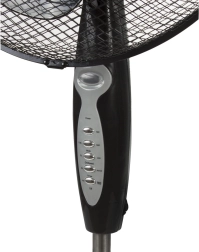 Този вентилатор предлага модерен и елегантен дизайн със стабилна четирираменна основа, снабдена с гумени крачета за безопасна стабилност. Благодарение на безстепенното регулиране на височината можете да го настроите според нуждите си до височина 125 см.