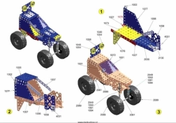 Конструкторът Merkur Офроуд Превозни Средства предлага уникална възможност да изграждате модели с окачване на колелата посредством специални пружини. Благодарение на това вашите модели ще се справят с всяко предизвикателство, което им поставите. Отличен начин да развиете уменията и въображението си: