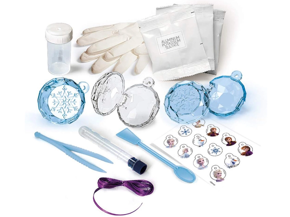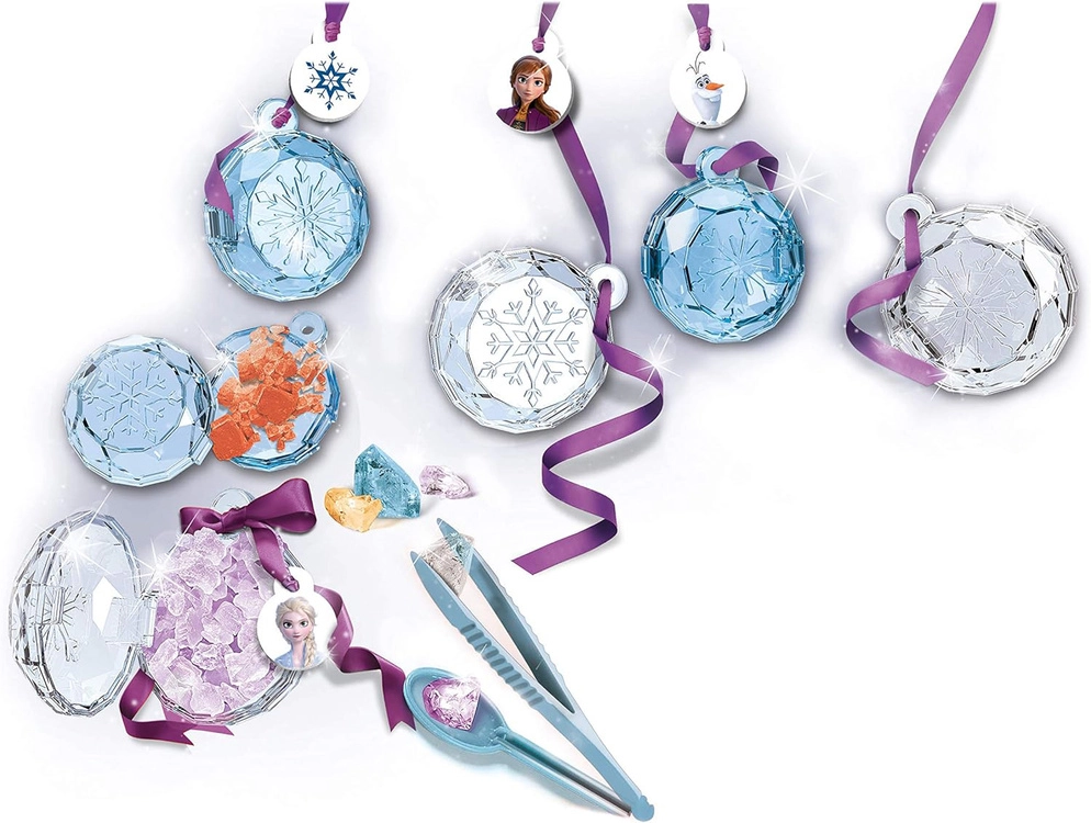 Crystal Jewels Frozen II от Clementoni съчетава експериментален комплект с ръчна изработка на бижута. Позволява ви да отгледате цветни кристали, които могат да се поставят в прозрачни медальони като неповторима украса. Този креативен комплект е идеален за смели и любопитни деца, които не се страхуват да изразят своята индивидуалност. Чудесен начин да впечатлите и да насърчите креативността!