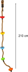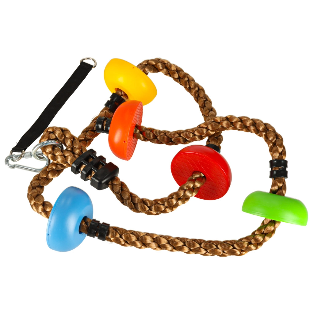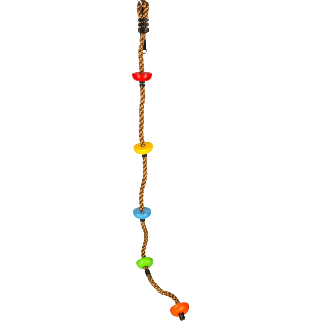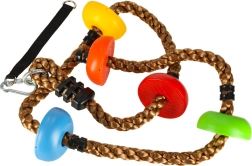 Катерително въже за всякакво време: Издръжлива играчка, създадена за интензивна целогодишна употреба. Изработено от устойчив PE материал, неподатлив на влага, слънце и студ, запазва качествата си независимо от времето. Неплъзгащите се дискове осигуряват стабилен захват – дори в дъждовни дни.