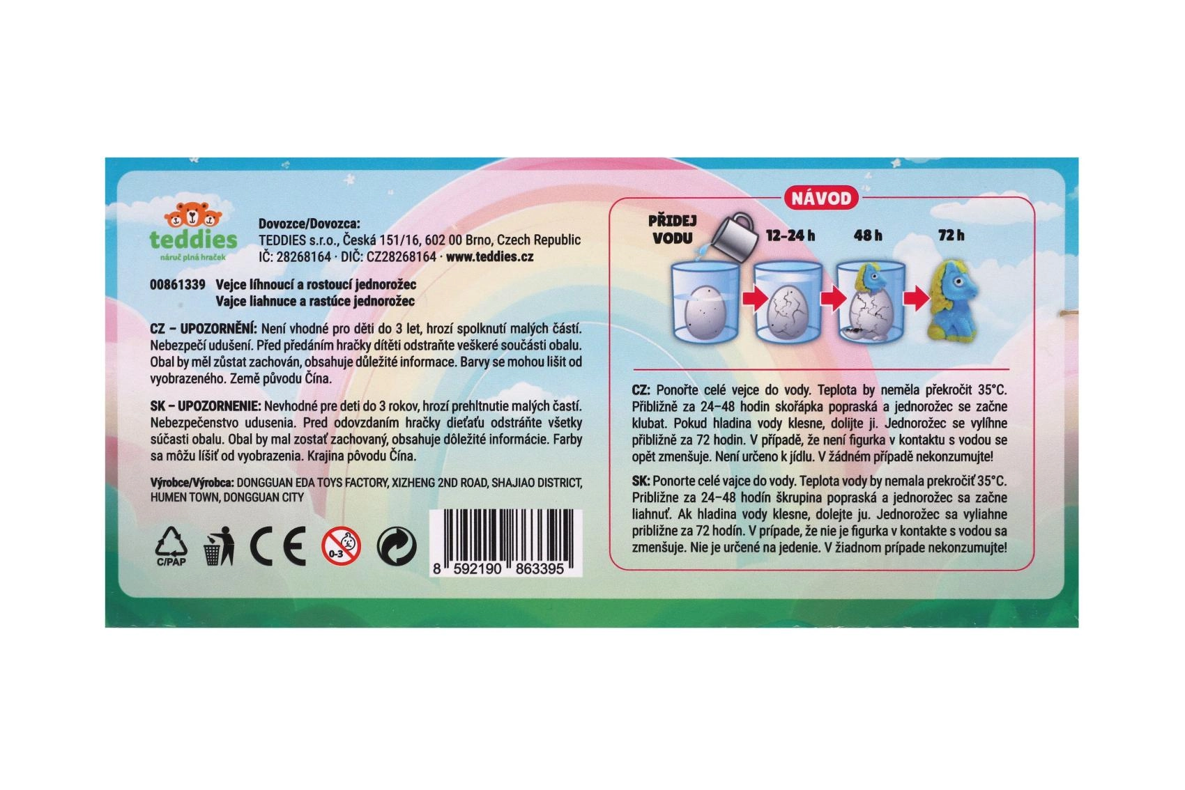 - Магически ефект на излюпване: яйцето се пропуква след намокряне и разкрива еднорог.