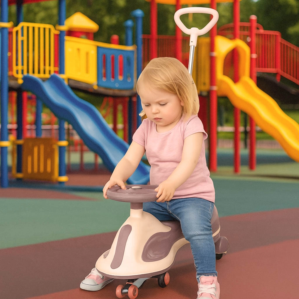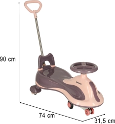 Гравитационната тротинетка е създадена за деца от 3 години. Специален механизъм позволява придвижване на превозното средство чрез редуване на завиване и телесни движения, което е чудесно за развитие на координацията, равновесието и самостоятелността.