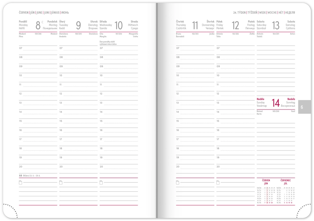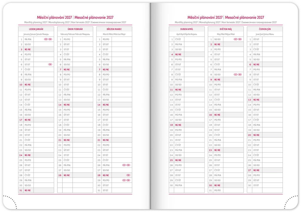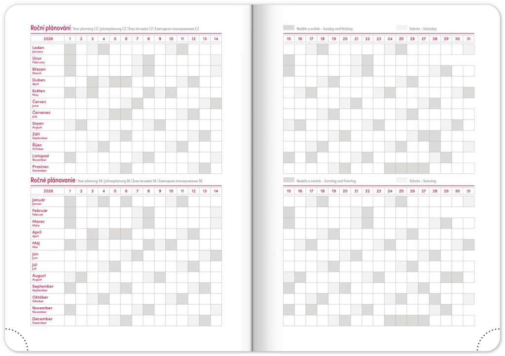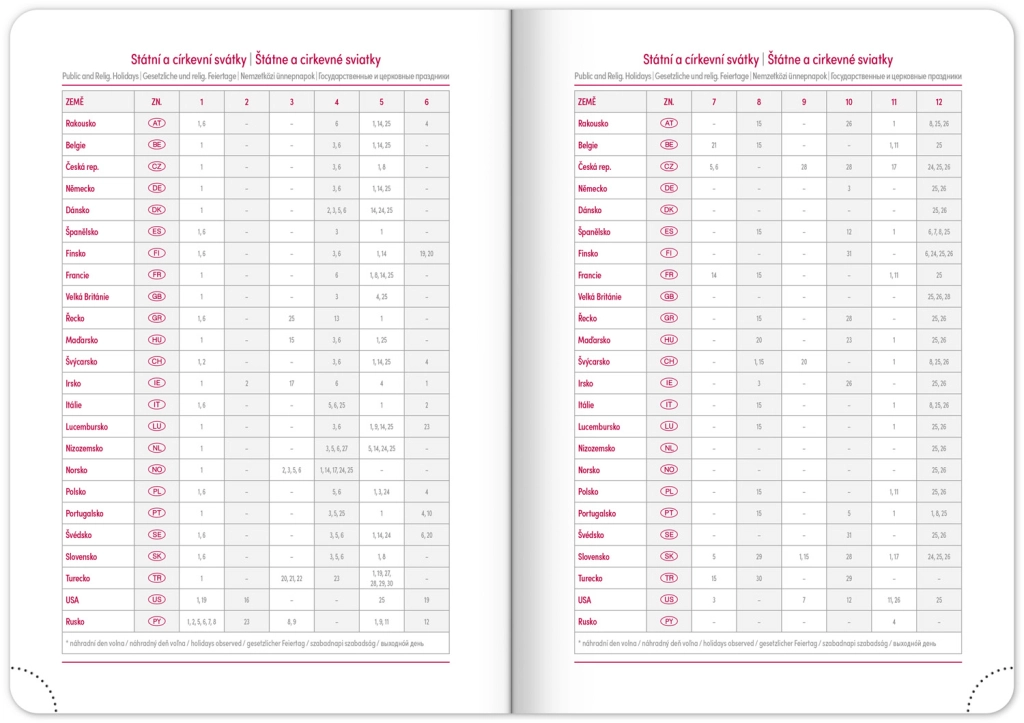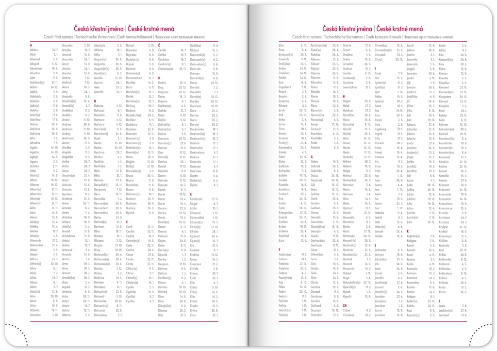 - Чешко-словашки календар, допълнително на английски, немски, унгарски и руски