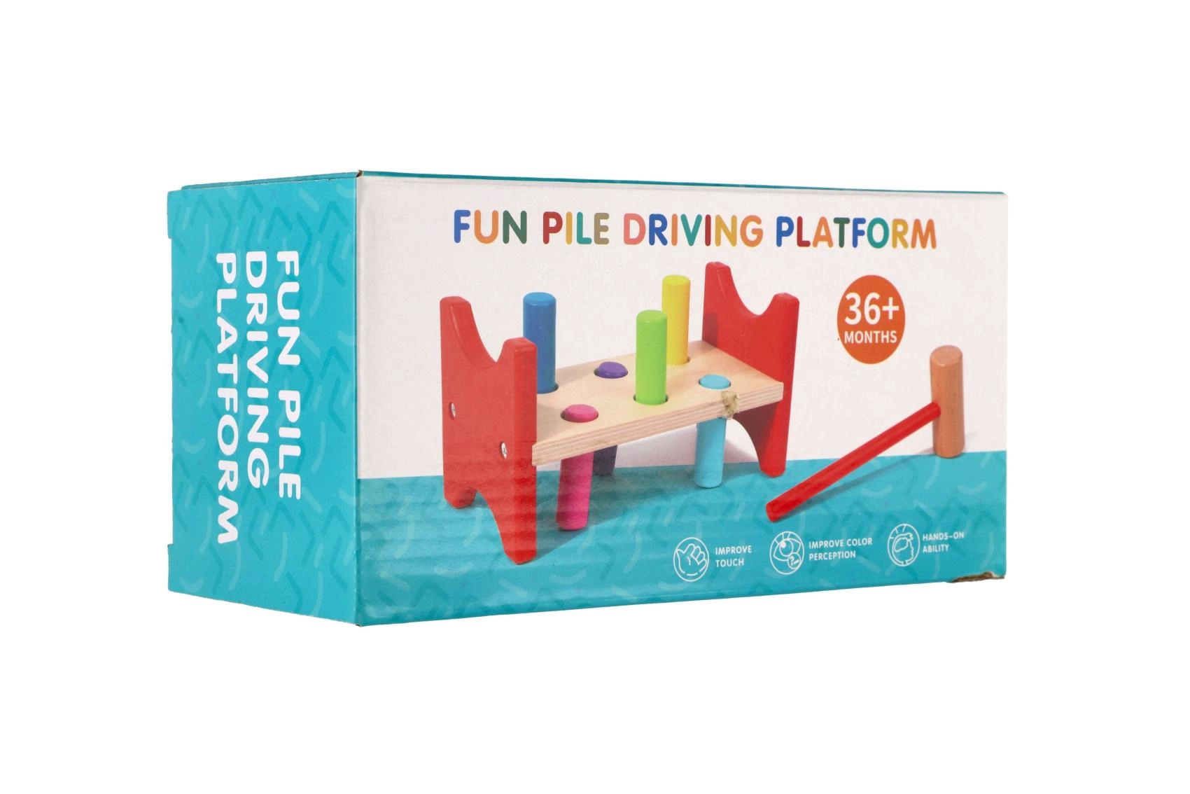 Лекото дървено чукче приляга удобно в детската ръка и помага безопасно да се развиват координацията око–ръка и силата на захвата.