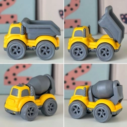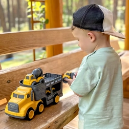 Безопасната, издръжлива пластмасова изработка, заоблените ръбове и ярките цветове правят комплекта идеален избор за ежедневна игра у дома и навън. Децата тренират креативността, въображението и координацията при товарене и разтоварване на превозните средства, превоз на товари или симулация на работа на строежа.