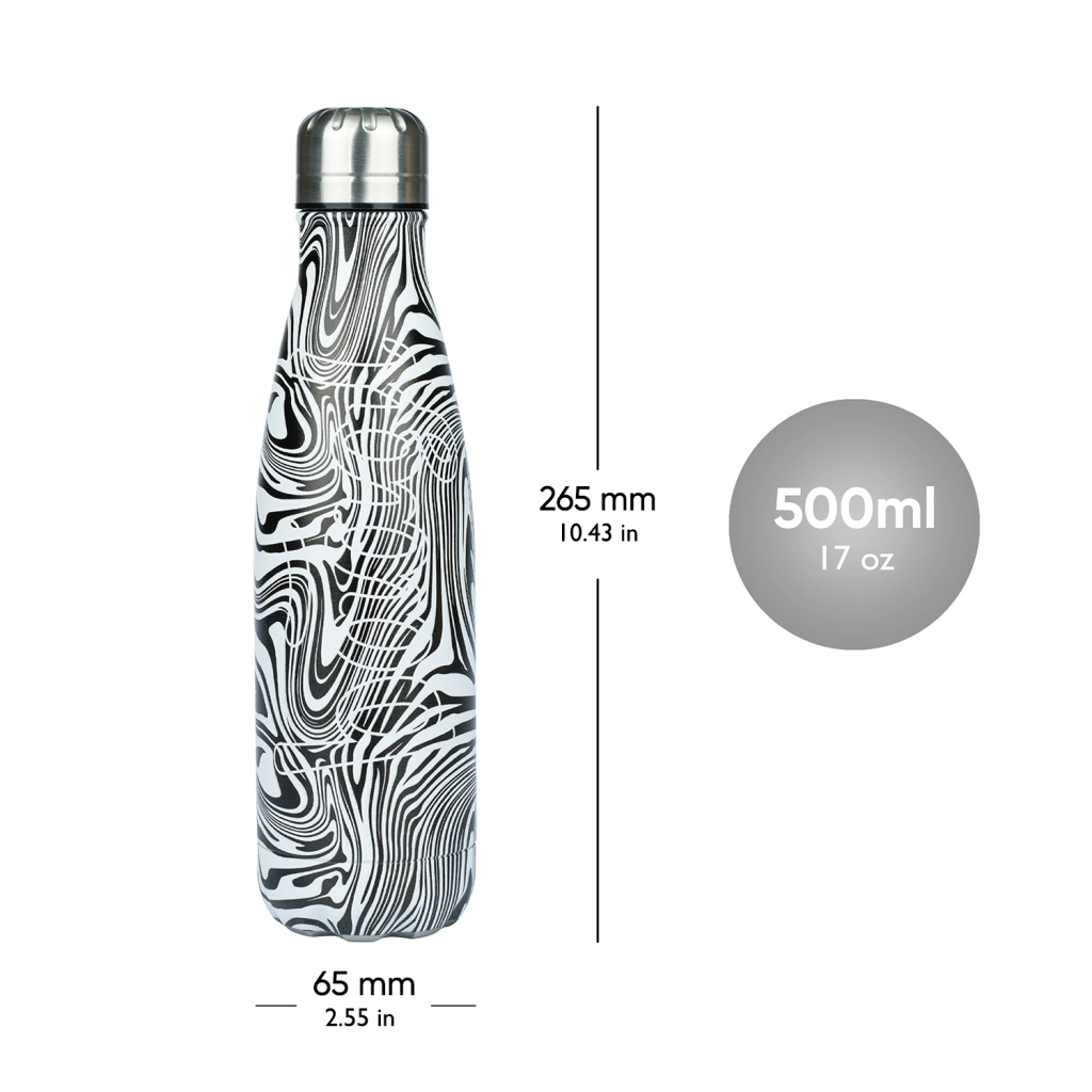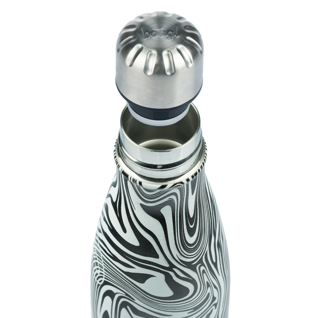 Стилна BAAGL термос бутилка с обем 500 ml и метална капачка, която е не само елегантна, но и функционална, идеална за съхранение на вашите напитки – топли до 12 часа и студени до 24 часа.