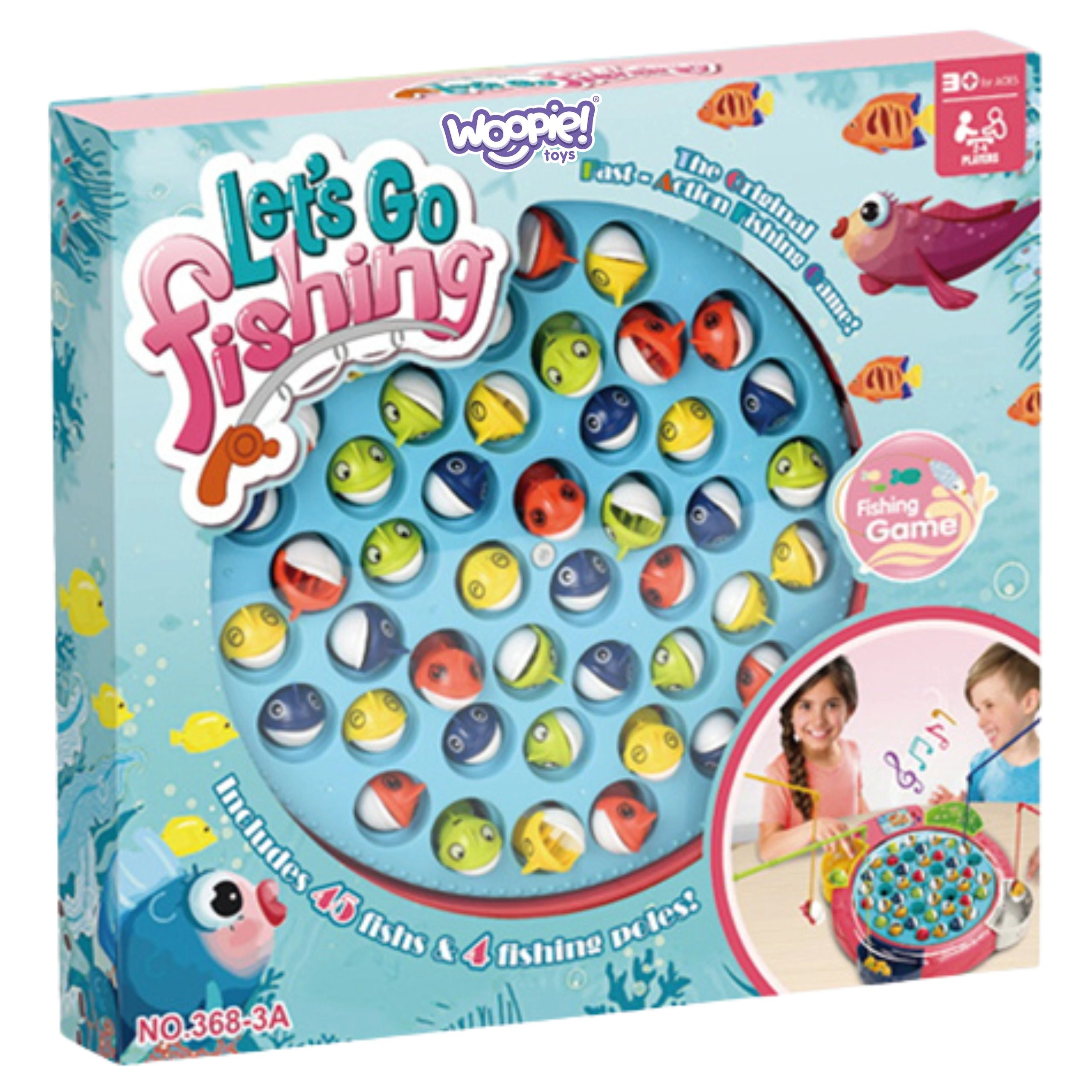 WOOPIE Риболов Игра е проектирана да бъде едновременно забавна и безопасна за нашите най-малки играчи. Високото качество на използваните материали гарантира пълна безопасност и лесен монтаж. Това е интерактивна игра, при която дъската се върти, а рибките отварят уста, за да бъдат уловени. Играта е подходяща за деца от 3 години и може да се играе от до 4-ма играчи.