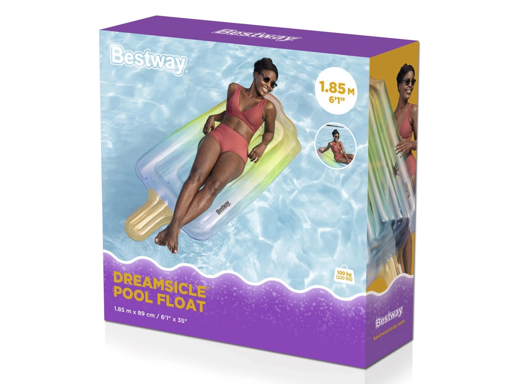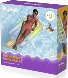 Открийте чара на надуваемия дюшек Bestway във форма на сладолед, който привлича вниманието с оригинален дизайн и живи цветове. Този дюшек не само изглежда атрактивно, но благодарение на размерите 185 cm x 89 cm осигурява достатъчно място за удобна почивка. Максималното натоварване 90 kg позволява да се използва както от възрастни, така и от по-големи деца.