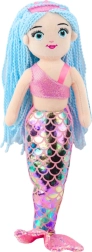 Тази очарователна плюшена русалка привлича вниманието не само с размера си, но и преди всичко със своя естетичен и вълшебен вид. Опашката е изработена от материал, наподобяващ блестящи люспи с холографски ефект. Дългата синя коса е от прежда, оформена в връвоподобни плитки, което създава зашеметяващ образ като от подводно кралство.
