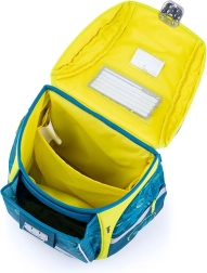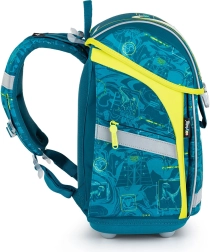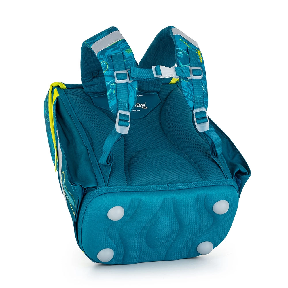 Раницата е оборудвана с широки, омекотени презрамки, които равномерно разпределят тежестта върху раменете и осигуряват комфорт дори при по-продължително носене. Дизайнът включва също практични гръдни презрамки за по-голяма стабилност. Не липсват и функционални джобове и рефлекторни елементи, които повишават безопасността на детето по пътя към училище.