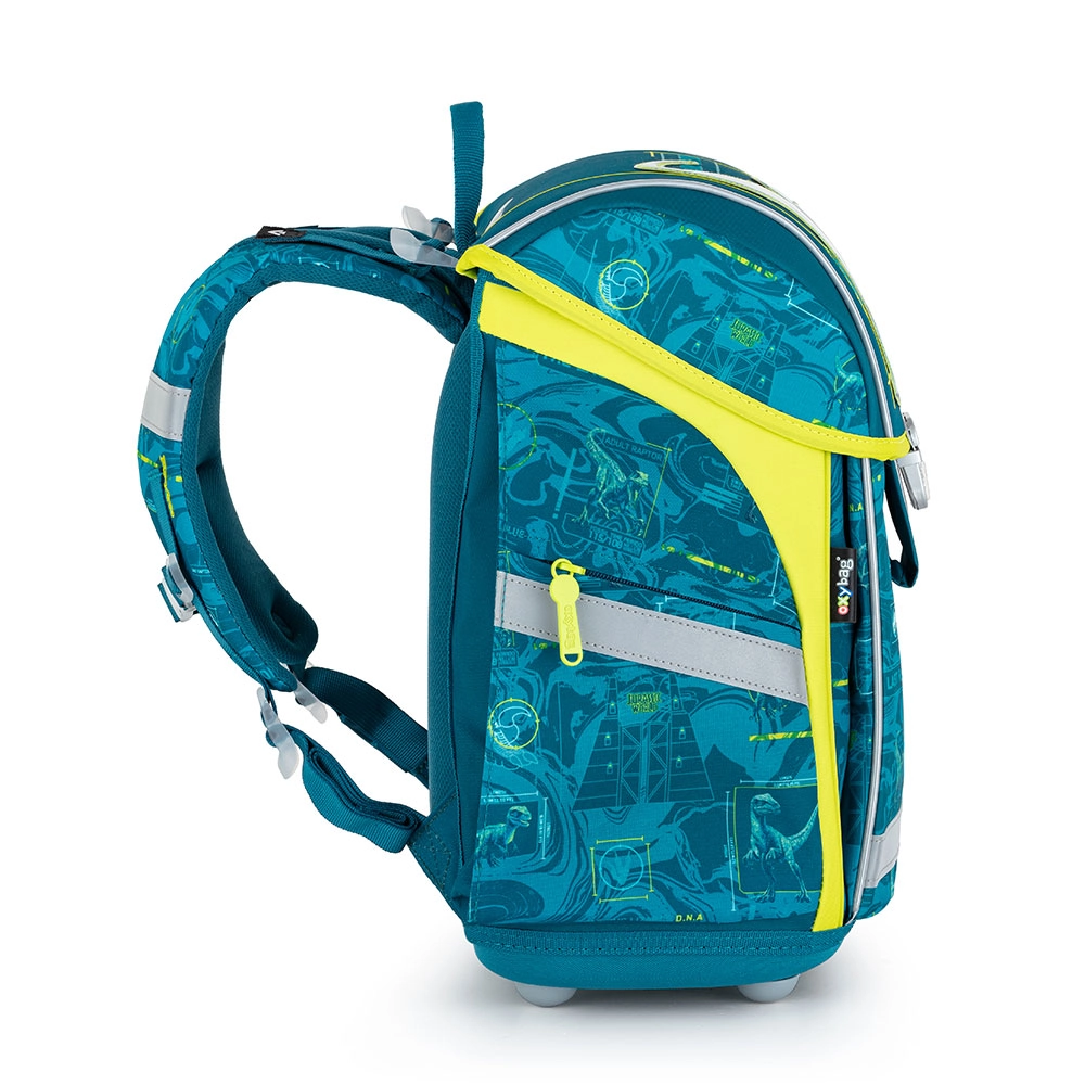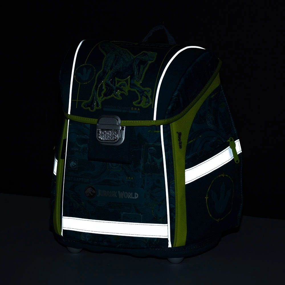 Популярната ученическа раница с мотив Jurassic World от серията Premium Light носи не само стил, но и изключителна функционалност. Благодарение на олекотения материал тежи само 900 g, което гарантира лесна употреба за децата. Тази раница е идеален избор за ученици с ръст от 121 cm.