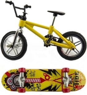 Този компактен комплект комбинира фингър BMX колело и скейтборд, благодарение на което децата опитват различни стилове на каране и трикове. Мини моделите са детайлно изработени, имат подвижни колела и лесни за управление елементи за плавно изпълнение на трикове на маса, пейка или домашни препятствия.