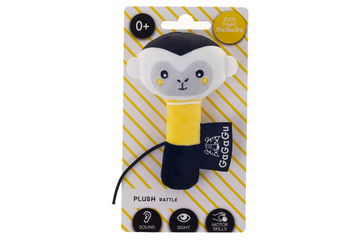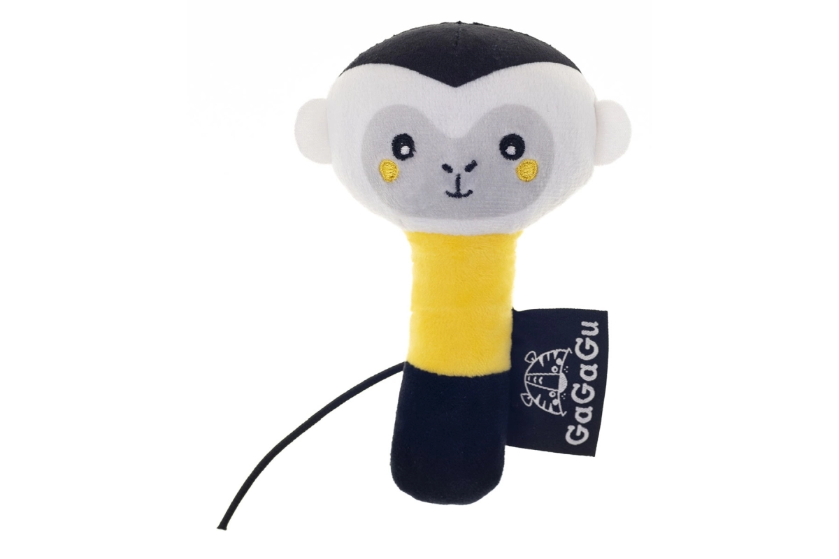 Очарователната плюшена дрънкалка във формата на маймунка от марката GAGAGU подпомага слуховото възприятие, зрителната стимулация и фината моторика. Тя е мека, лека и отлично пасва в малките детски ръчички. Контрастните цветове и нежният, приятен звук правят играчката идеален спътник у дома, на разходка и по време на пътуване. Подходяща за деца от 0 месеца.