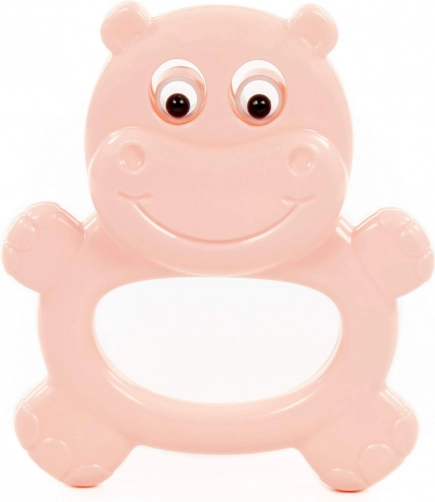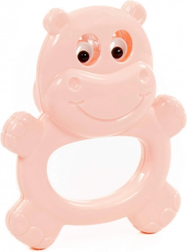 Тази розова дрънкалка във формата на хипопотамче е създадена за най-малките ръчички. Благодарение на ергономичния отвор децата я хващат лесно, а приятният звук на дрънкане стимулира слуха и естествено подпомага координацията око–ръка.