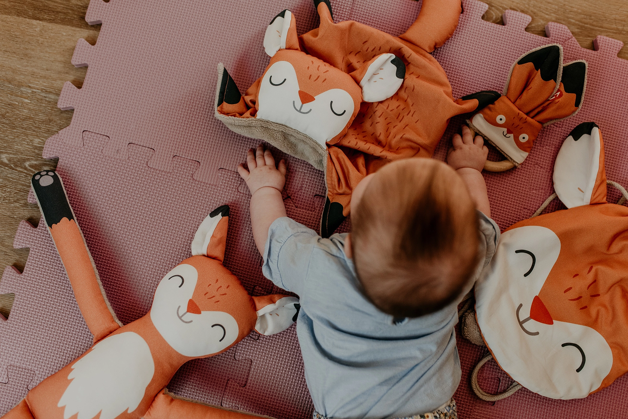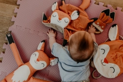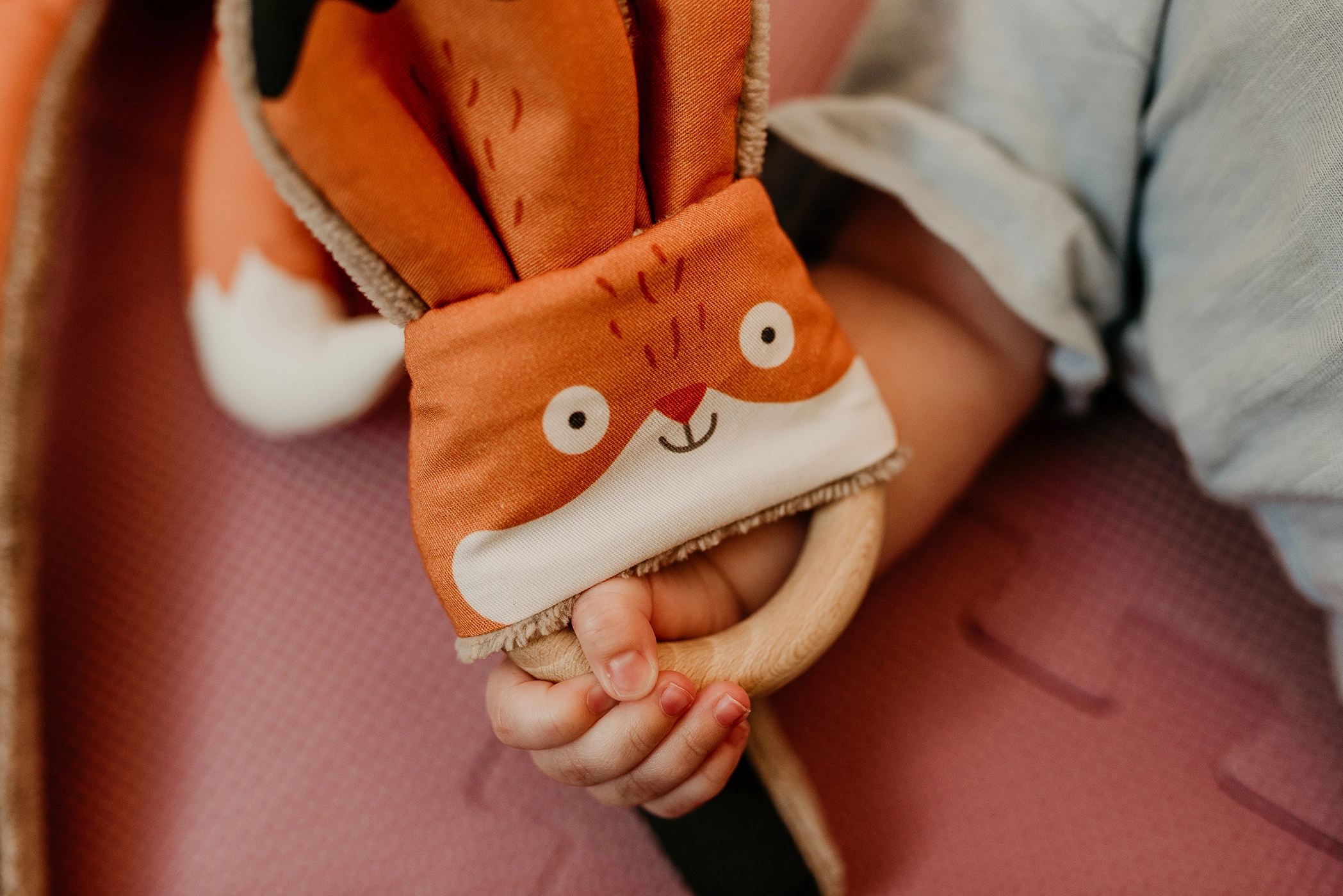 Играчката Дъвкалка Лисиче от Ababu съчетава оригинален дизайн с безопасност за най-малките. Материите с авторски принт са от 100% памук, със сертификация за деца до 3 години. Пръстенът е от естествен бук, ръчно изработен във Височина.