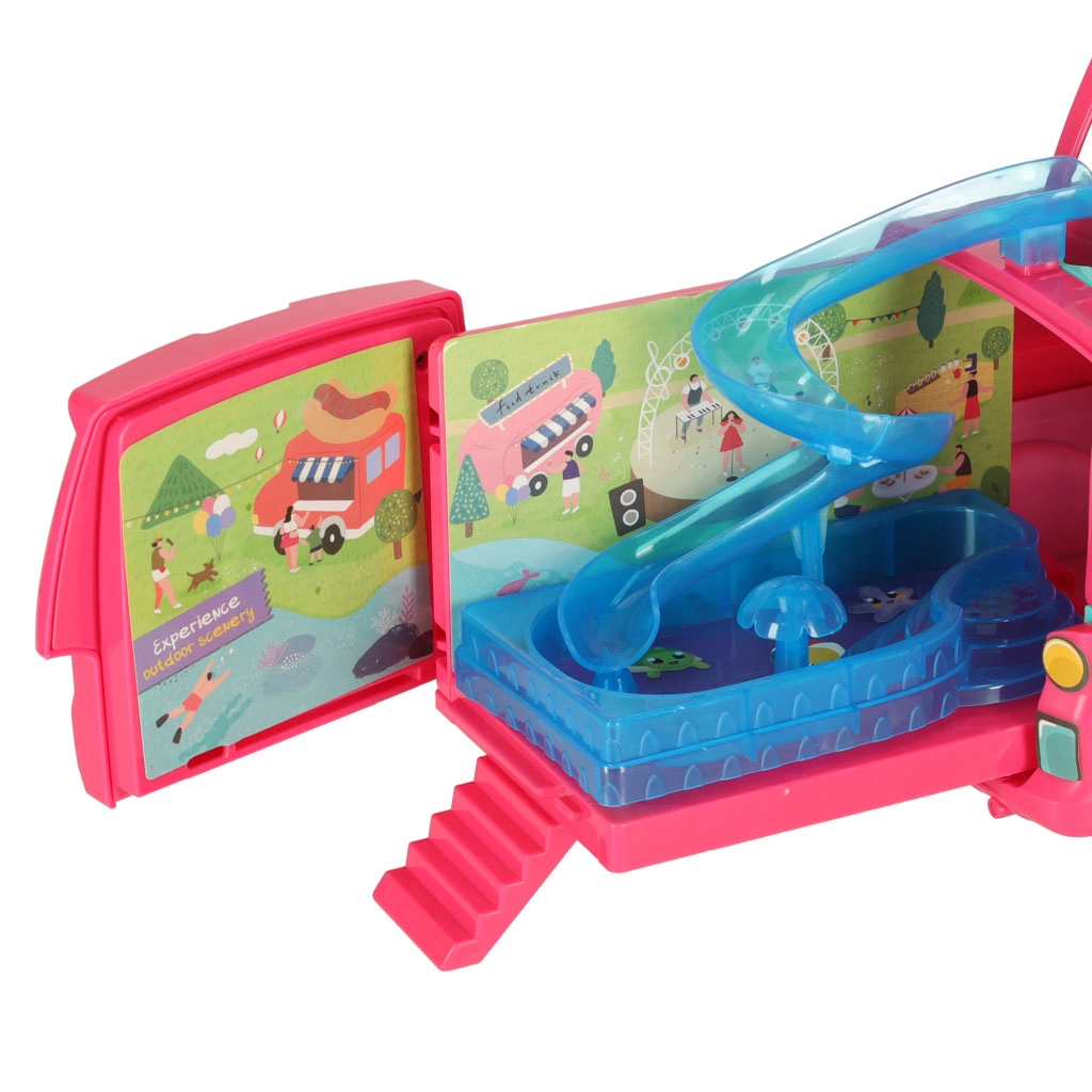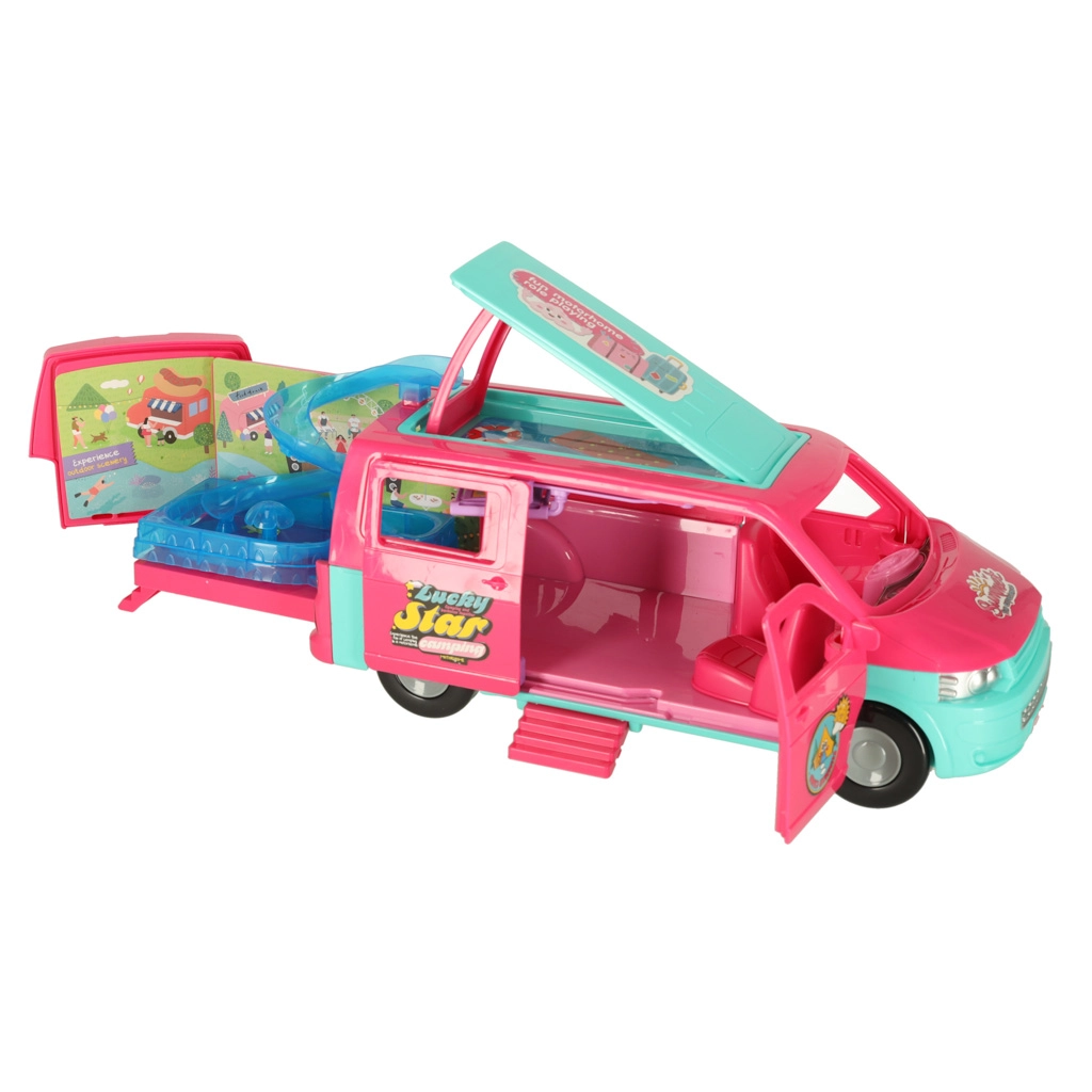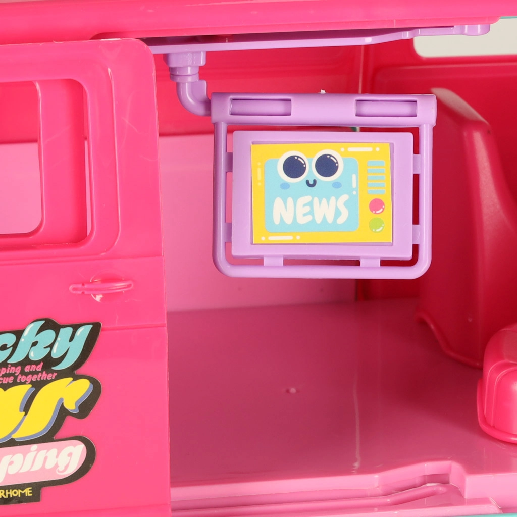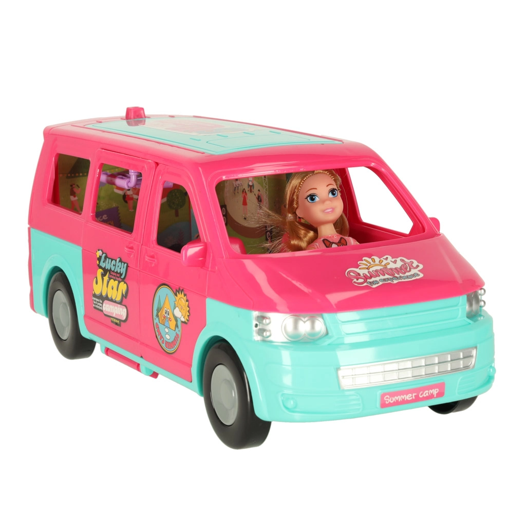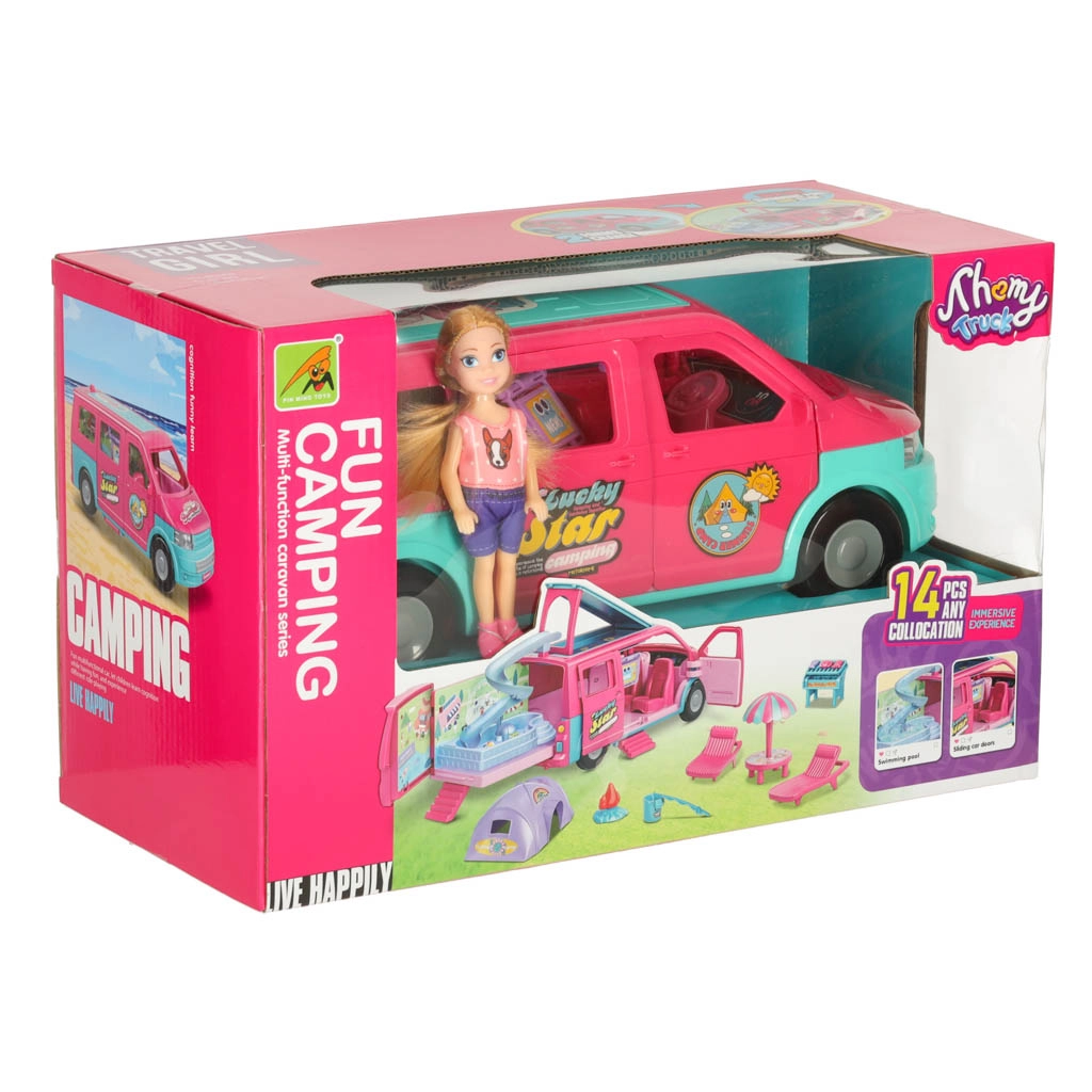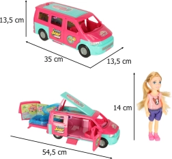 Отведете куклите си на страхотни приключения с кемпер караван, който осигурява перфектни условия за забавни игри. Комплектът включва всички необходими аксесоари за релакс и игра на плажа или сред природата: