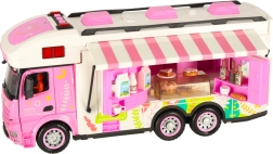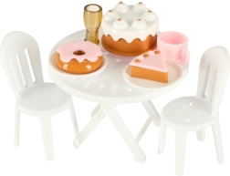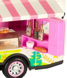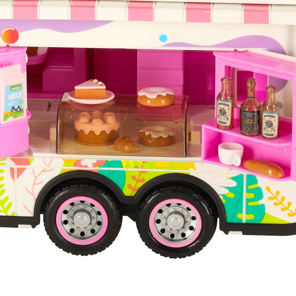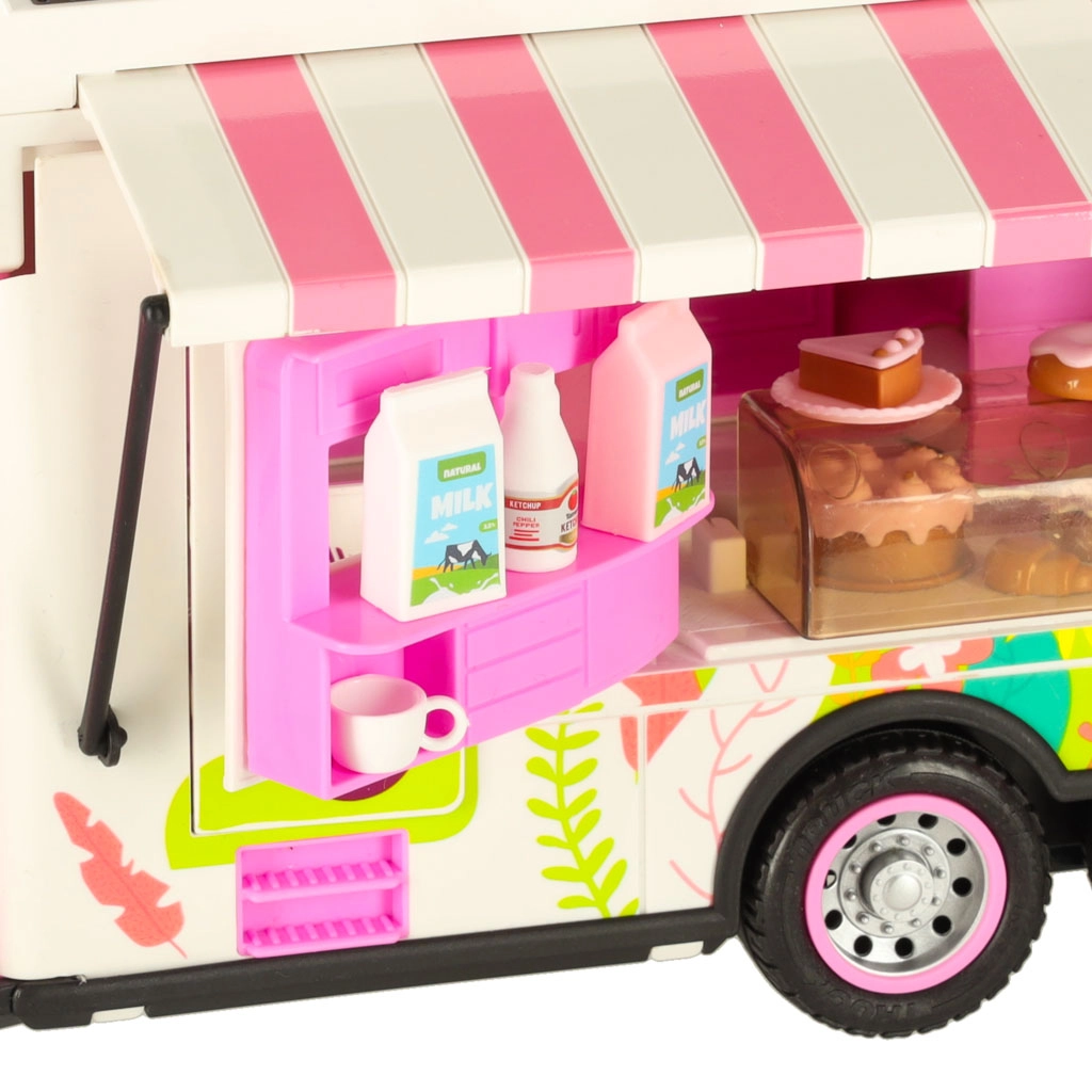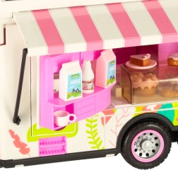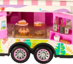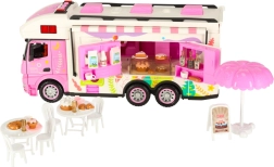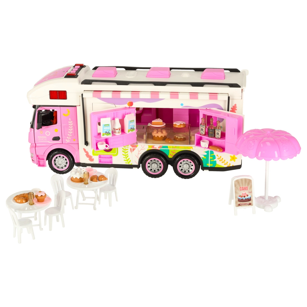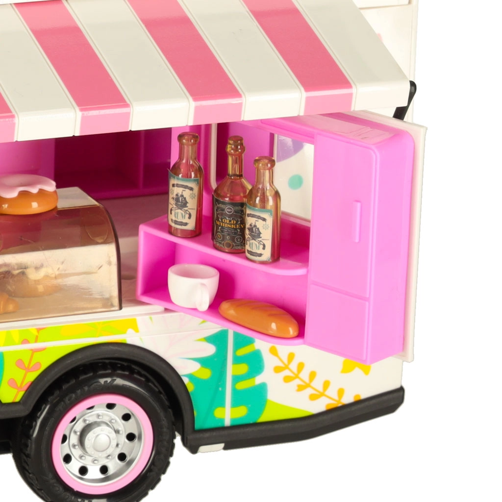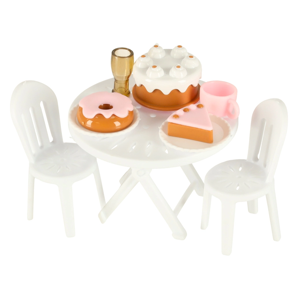 Този комплект съдържа различни аксесоари, които позволяват на децата да симулират истинско къмпингуване. Включени са масичка, столчета, мини съдове и стикери, които добавят личен почерк. Децата могат също да поставят рекламен банер и градински чадър, което осигурява още повече възможности за игра.