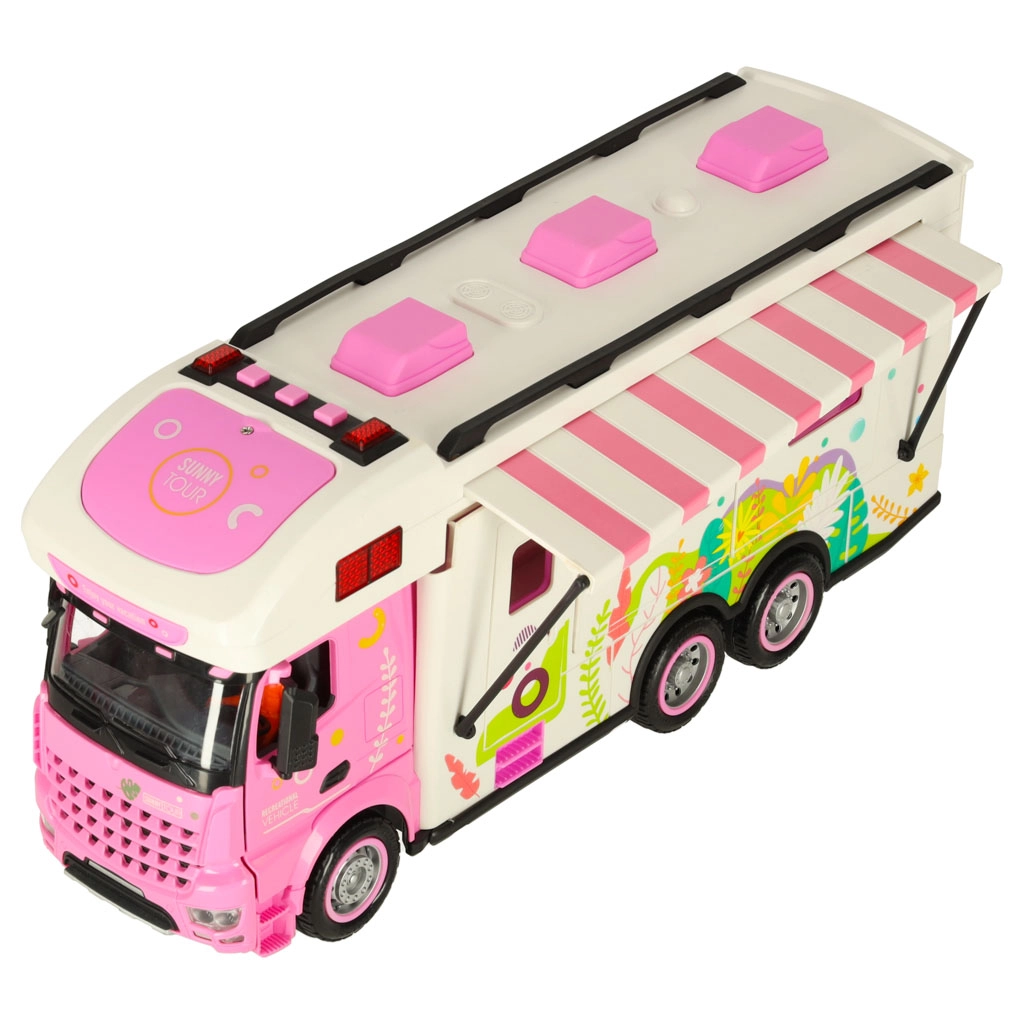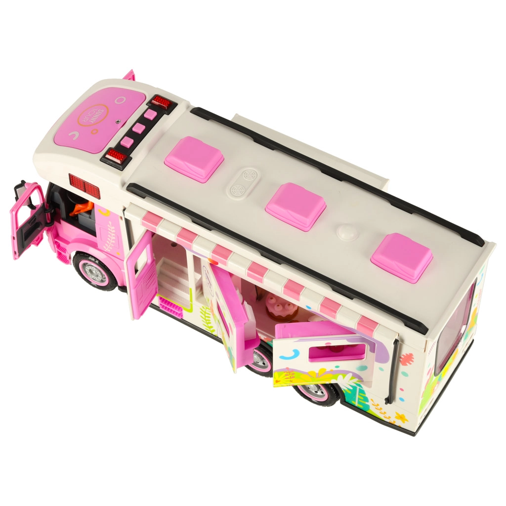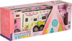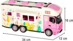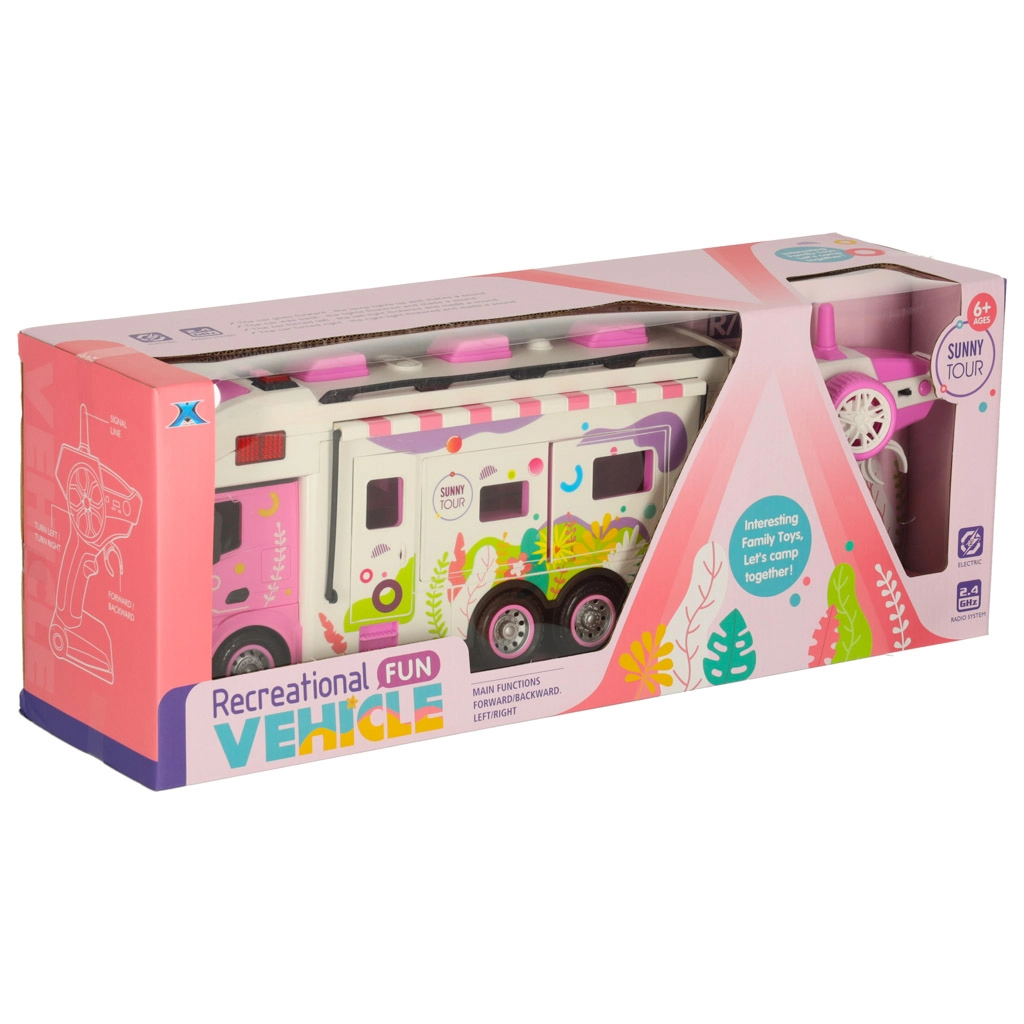 Открийте света на къмпинга с този интерактивен караван, който е идеалният спътник за малки авантюристи. Децата могат с помощта на дистанционното да управляват каравана напред, назад, наляво и надясно, което им осигурява реалистично шофиране. Караванът е допълнително оборудван със светлини и звуци, които добавят още слой забавление. Играчката е подходяща за деца от 3 години.