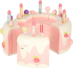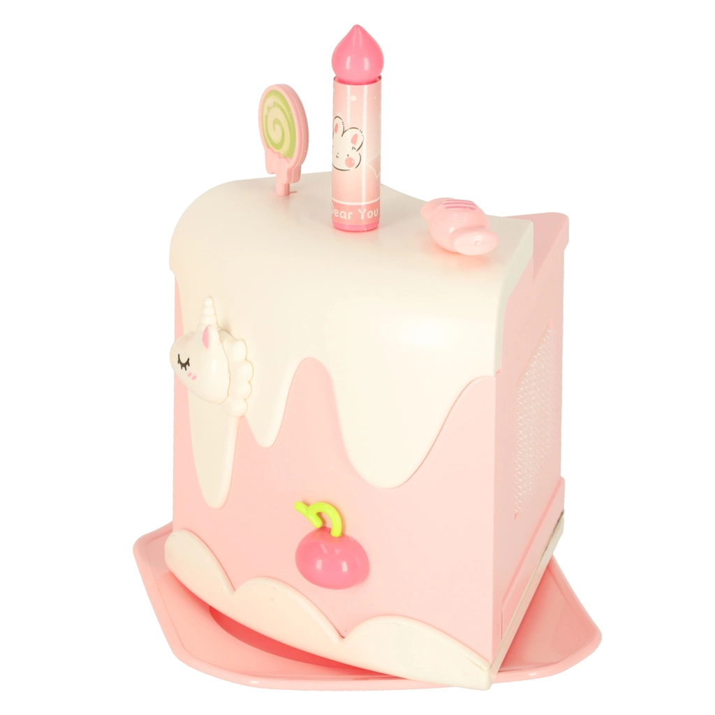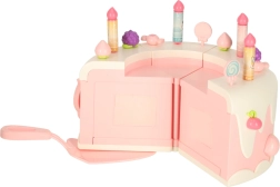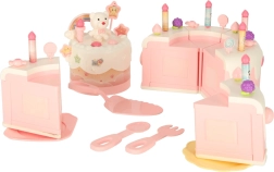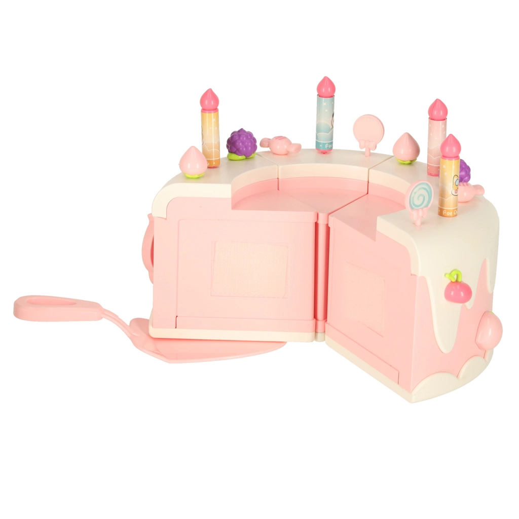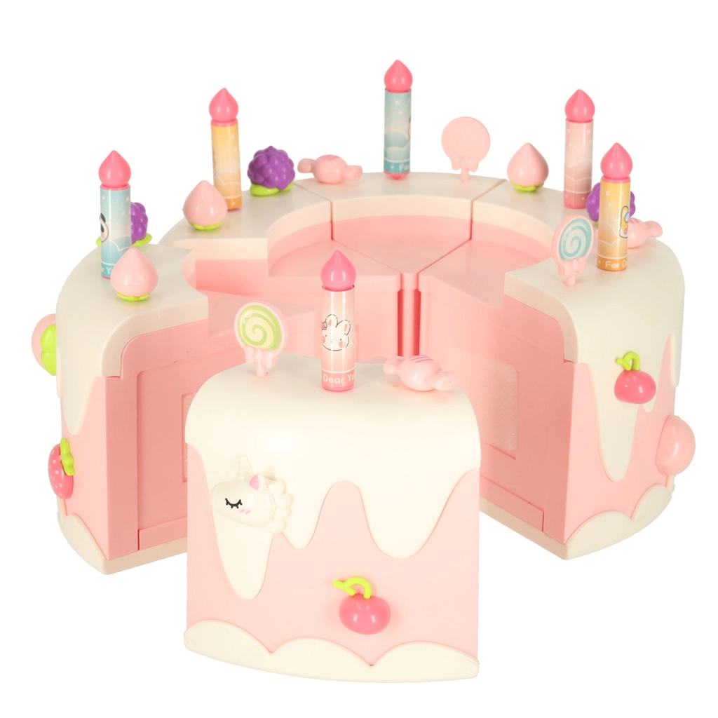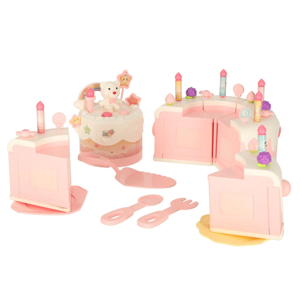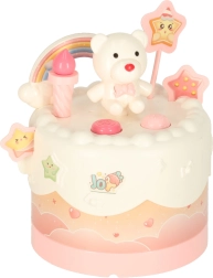Двуетажната рожденденска торта, изработена от висококачествена пластмаса, е идеалната играчка за деца над 3 години. Развива детската креативност и фината моторика благодарение на интерактивни елементи като въртене и музикални ефекти. Комплектът включва сладки фигурки на меченце и еднорог, шест свещички и допълнителни аксесоари.
