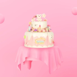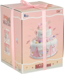 Тортата пристига украсена с розова панделка в прозрачен пакет с прозорче. Захранване с три батерии тип AA (не са включени в комплекта).