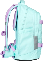 Ученическата раница Skate Max Sweet е изработена от рециклиран и водоустойчив материал, който гарантира сигурност и издръжливост. Разполага с подвижен колан за кръста, а специалната вложка от EVA пяна запазва формата ѝ. Подсилената дръжка на раницата увеличава носимостта до 8 кг. Раницата е подходяща за деца с ръст 155–185 см, което отговаря на ученици от 3. клас нагоре.