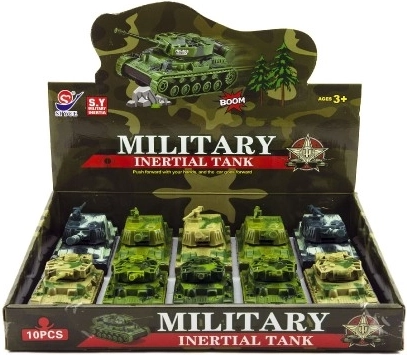 Този компактен пластмасов танк е отличен избор за малките любители на военната техника. Благодарение на инерционното задвижване лесно тръгва в действие – просто го издърпайте и пуснете. Моделът се отличава с проста и издръжлива изработка, подходяща за всекидневна игра.