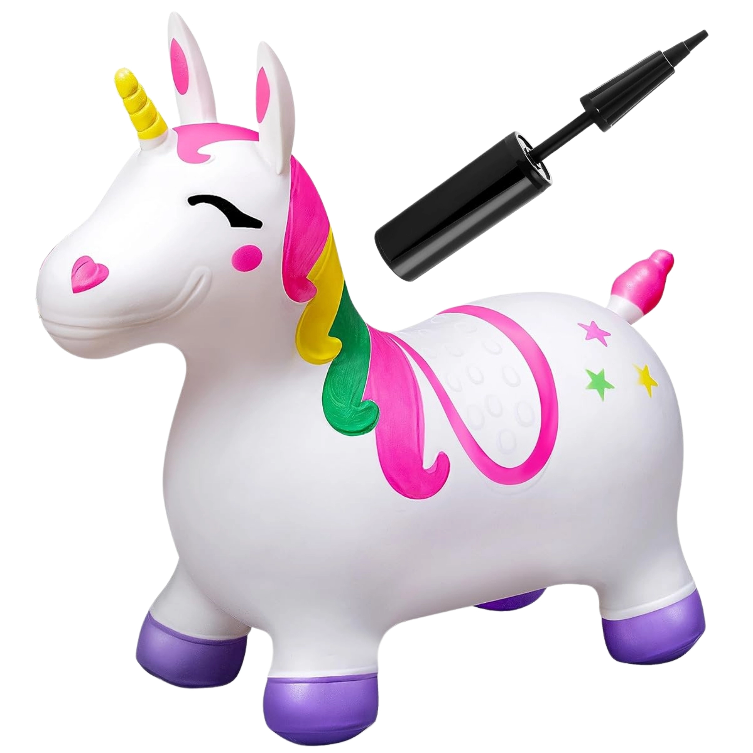 Донесете у дома вълшебния свят на фантазията с надуваемия скачащ еднорог. Изработен е от безопасни и издръжливи материали и разполага с удобни дръжки за сигурно скачане. Този продукт е подходящ за деца от 12 месеца, а максималното натоварване е до 45 кг. Благодарение на изключителния си дизайн и широката основа с противоплъзгащи се крачета осигурява стабилност и безопасност.