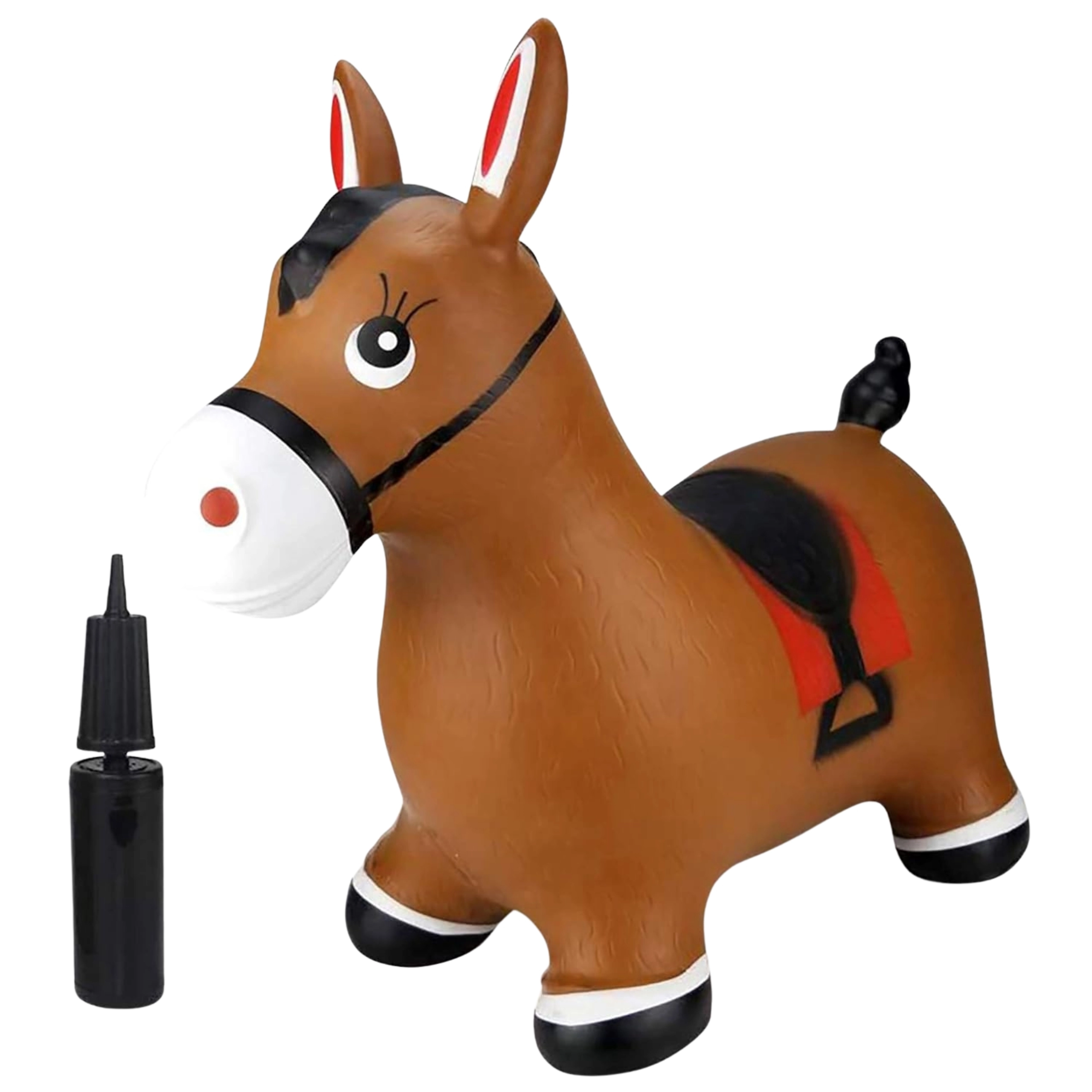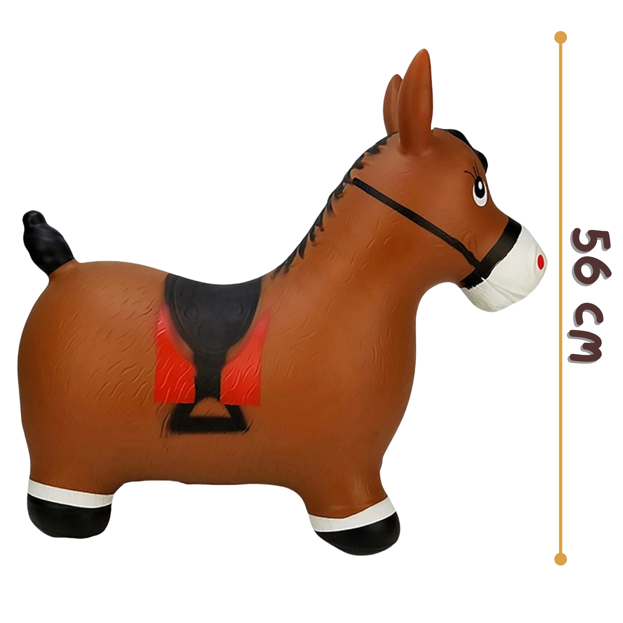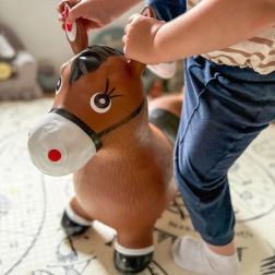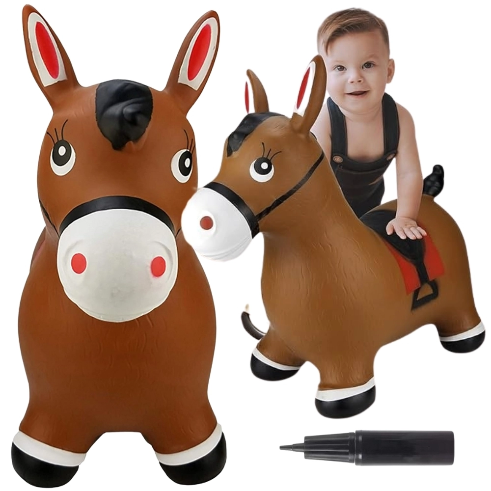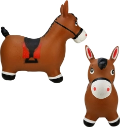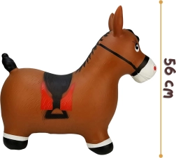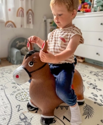 Яркият дизайн на сладкото кафяво конче със седло мотивира към игра и насърчава фантазията. Максималното натоварване е 45 kg и препоръчаното налягане 0,3–0,4 bar осигурява правилна еластичност за удобно скачане. Комплектът включва практична помпа, така че забавлението може да започне веднага след разопаковане.