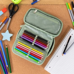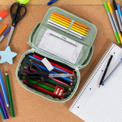 Стилен училищен несесер в ментов цвят за млади почитатели на скейтборда. Компактен дизайн с просторна основна камера и двойна разгъваща се клапа предлага достатъчно място за всички писмени принадлежности.