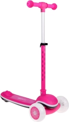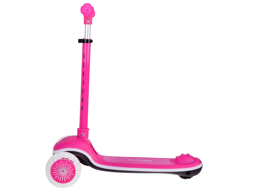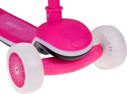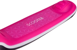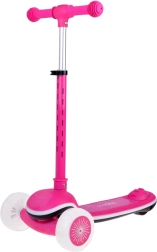 Конструкцията комбинира издръжлива метална рамка и качествени пластмасови елементи, тихи гумени колелца и задна крачна спирачка. Регулируемото в три стъпки кормило лесно се наглася според ръста на детето. Монтажът е лесен и без инструменти, тротинетката е лека и удобна за пренасяне.