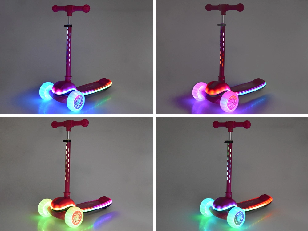 До 20 режима на LED осветление и 4 музикални мелодии превръщат всяко каране в шоу. Осветените предни колела, рамка и стъпало повишават видимостта и забавлението.