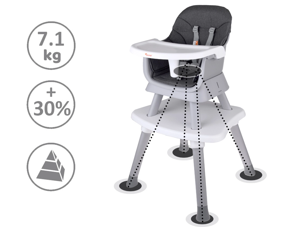 - Надстройка за трапезна маса – благодарение на закрепващи колани и противоплъзгащи крачета се фиксира безопасно към всеки стол.