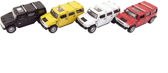 Реалистичният модел Hummer H2 SUV с дължина 12 см предлага качествена изработка, метална каросерия (die-cast) и издръжливи пластмасови детайли. Благодарение на обратното движение е достатъчно да дръпнеш количката назад и да я пуснеш – веднага потегля напред. В много версии допълнително радва с отваряеми врати, които увеличават удоволствието от играта и експонирането в колекция.