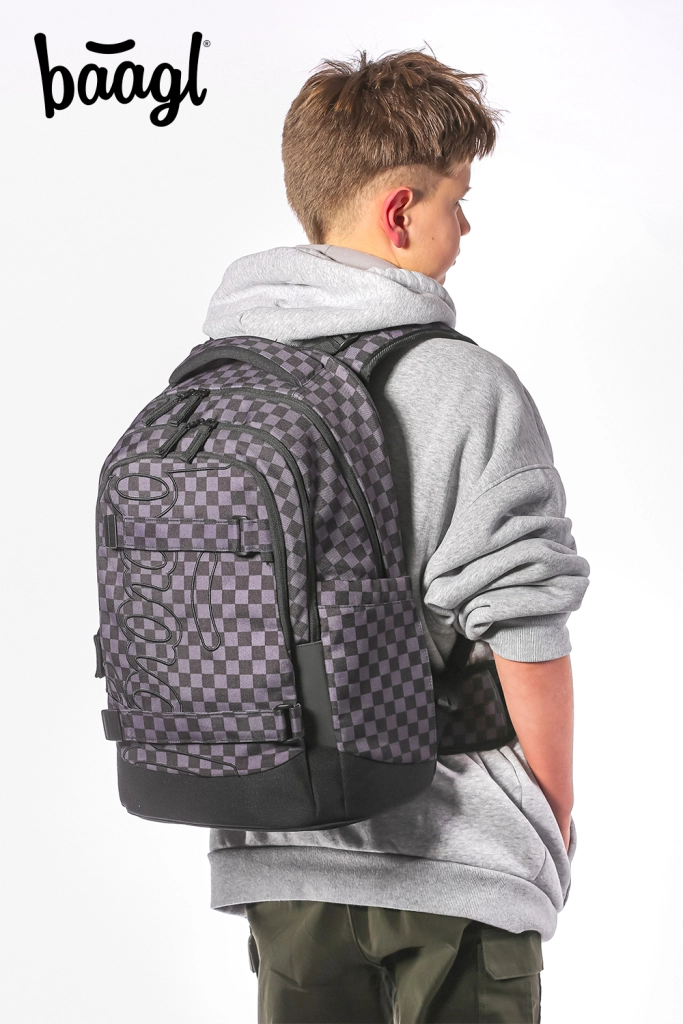 Изберете нашия комплект училищни принадлежности BAAGL Skate Max, идеален за всички ученици и студенти. Раницата е изработена от рециклиран, водоотблъскващ материал и е оборудвана с регулируема система за гръб за по-голям комфорт. С трите си отделения, включително джоб за лаптоп и практични ципове YKK, имате осигурена безопасност и лесен достъп до всички вещи. Несесерът предлага достатъчно място за писалки и пособия с възможност за съхранение на учебната програма и е изработен от издръжлив материал със здрави ципове. Торбичката за обувки или други дребни предмети е от здрав, миещ се материал и може удобно да се носи на гръб.