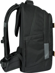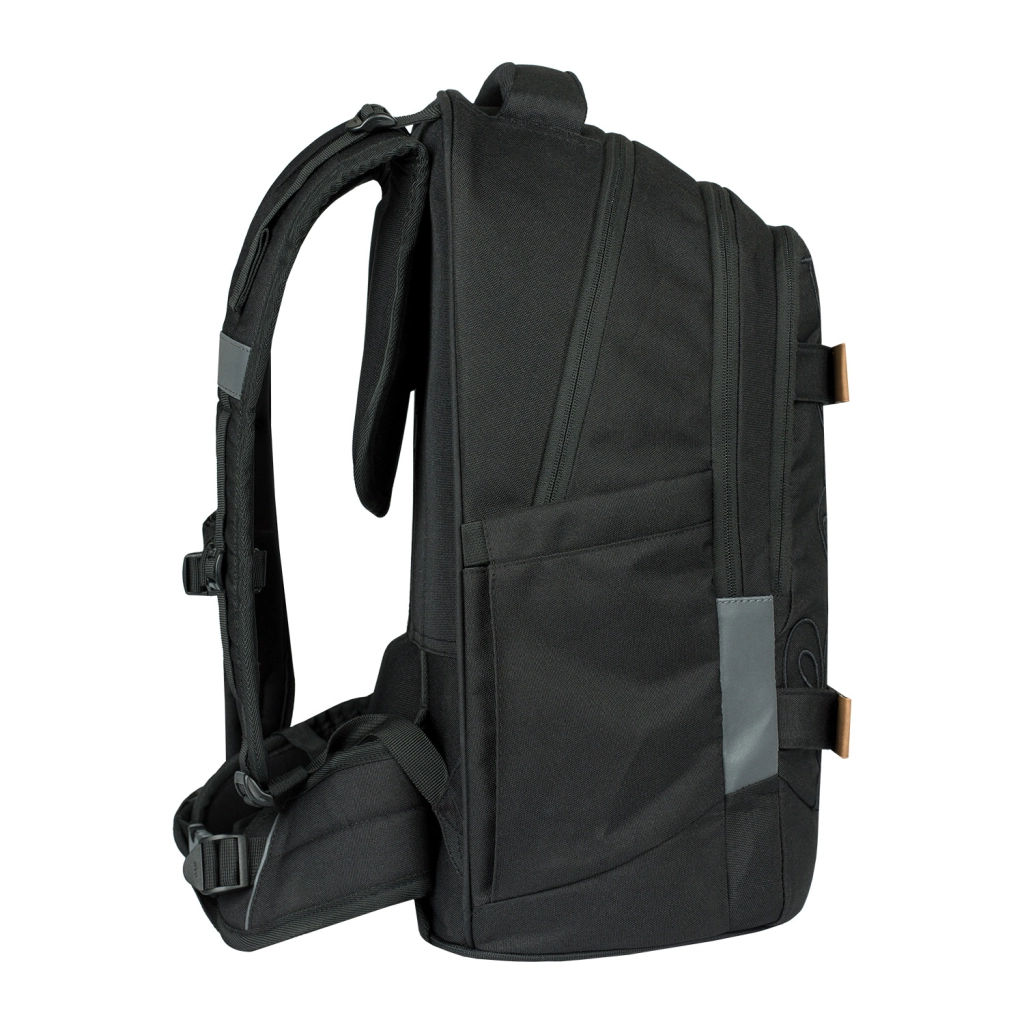 Лека раница с регулируема задна система, изработена от водоустойчив материал с рефлектиращи елементи за максимална безопасност.