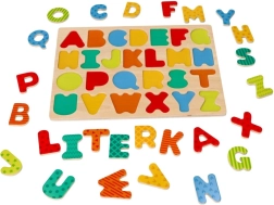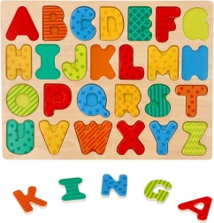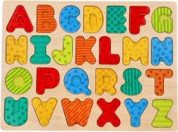 Изпробвайте иновативния дървен пъзел Азбука, който предлага интерактивен начин да научите децата на буквичките и едновременно да развиете техните моторни умения: