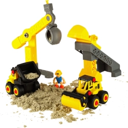 Креативният комплект с пясък за деца е идеален начин да развиват въображението и фината моторика. Съдържанието на опаковката предоставя всичко необходимо за създаване на впечатляващ замък и забавни игрови ситуации благодарение на моделите превозни средства и фигурките. Децата могат с помощта на аксесоари като лопатки и сортери да създават собствени истории и сцени.