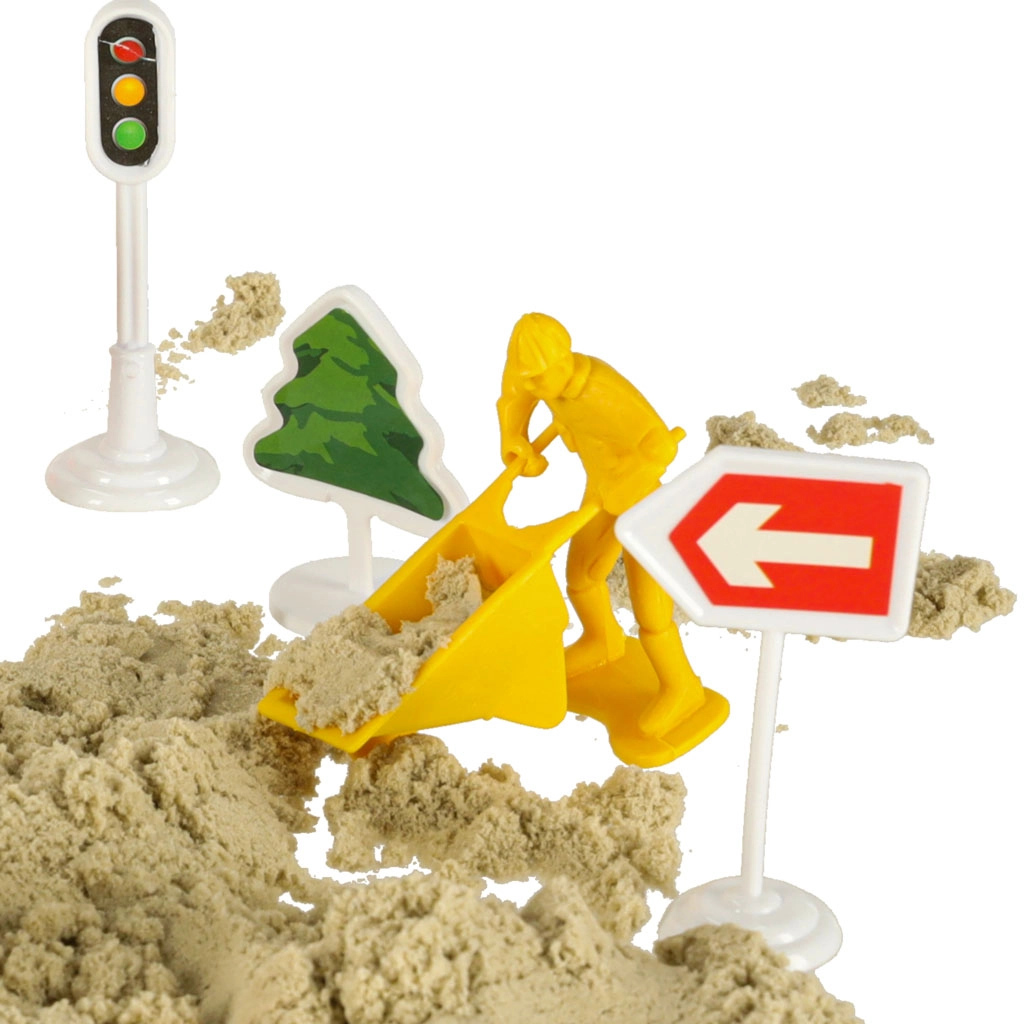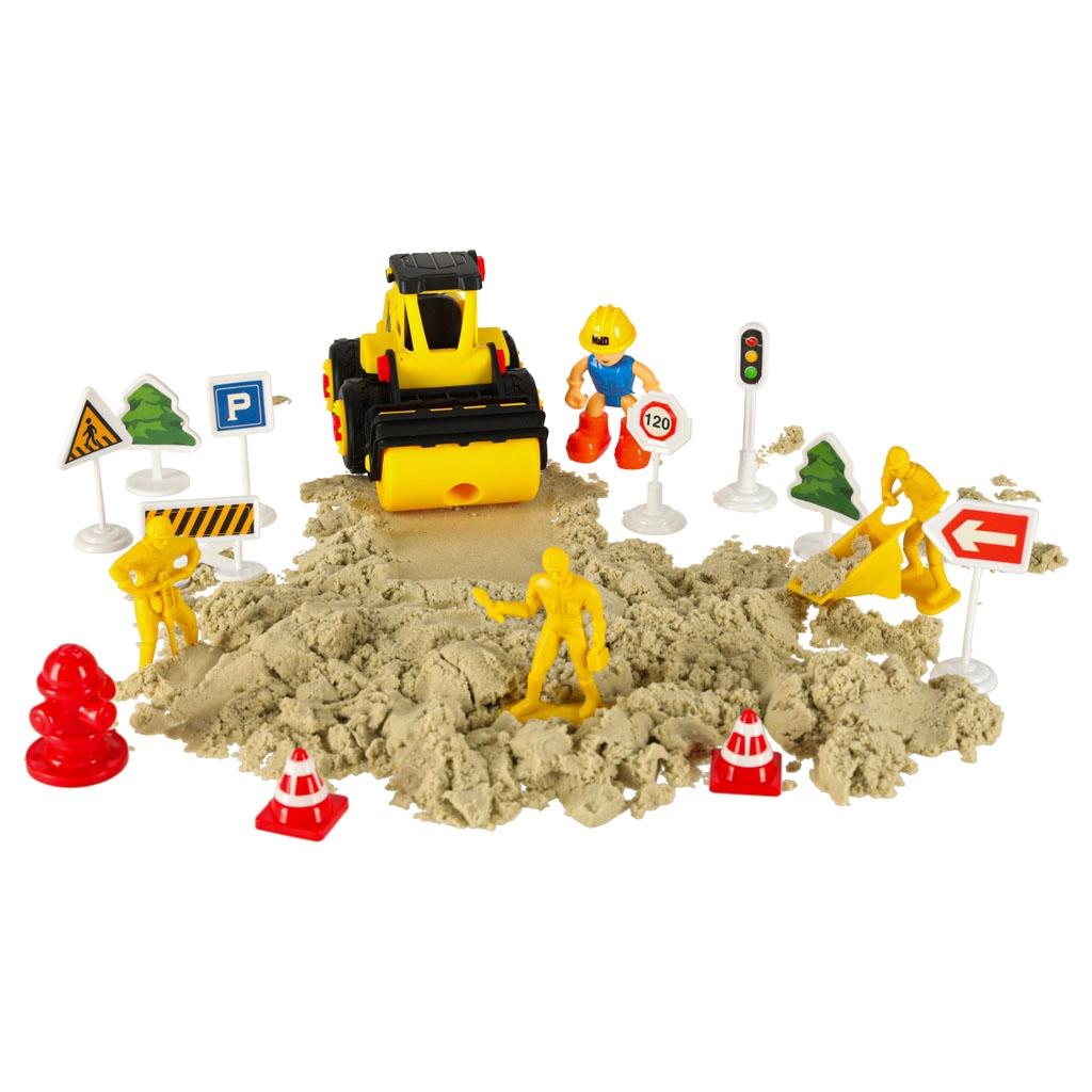 Този креативен комплект с пясък предлага безкрайни възможности за забавление за деца от 3 години. Съдържа 1100 г пясък, пълен комплект за замък и превозни средства за задържане на вниманието и развитие на креативността.