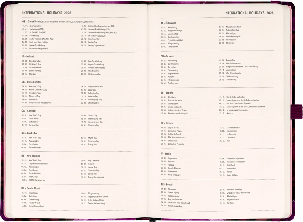 - Календар с международни празници, линиирани страници