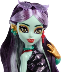 Jinafire Long е готова за всяко приключение с раница, слънчеви очила, телефон и „пиен йогурт“, които също са част от комплекта. Открийте цялата колекция Monster High и се потопете в света на модата и фантастичните истории. Продава се отделно според наличността.